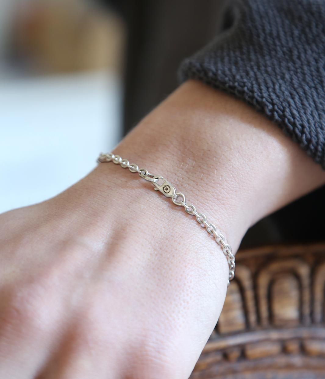Distressed classic light weight Rolo chain bracelet with a little pig engraved on the clasp. This bracelet is one of a kind (1 of 1)