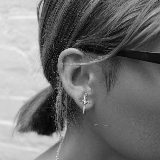 STRAIGHT THROUGH OG CRUCIFIX STUD 14K