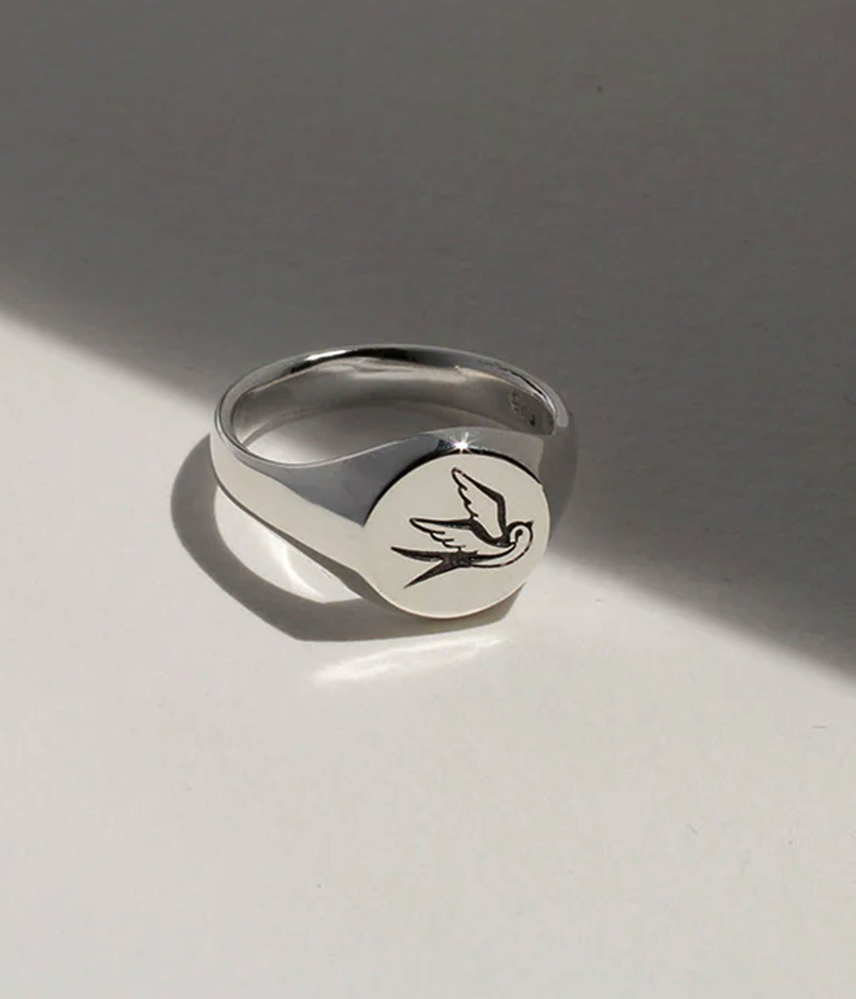 The Hunt Sterling Silver round swallow signet ring