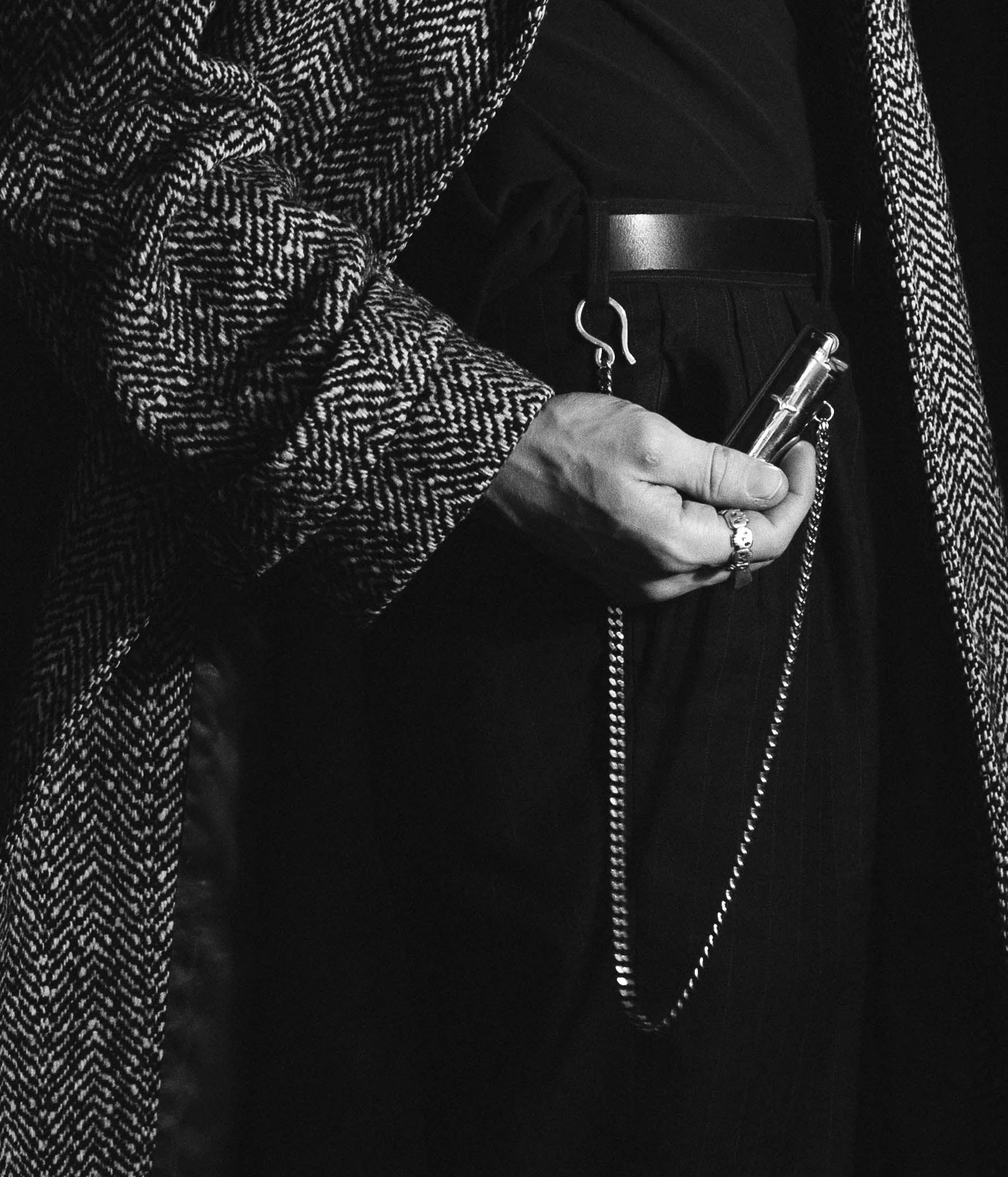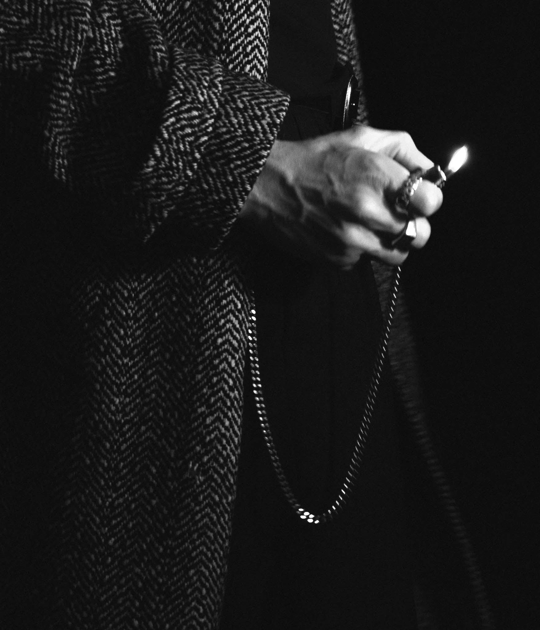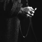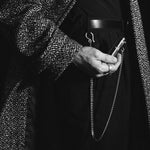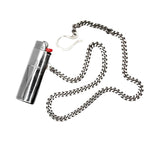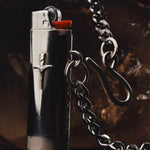 Stylish lighter sleeve with sterling crucifix pendant. Hangs from 22” curb pocket chain with a silver fishhook for your belt loop. Can be worn as a necklace or pocket chain.