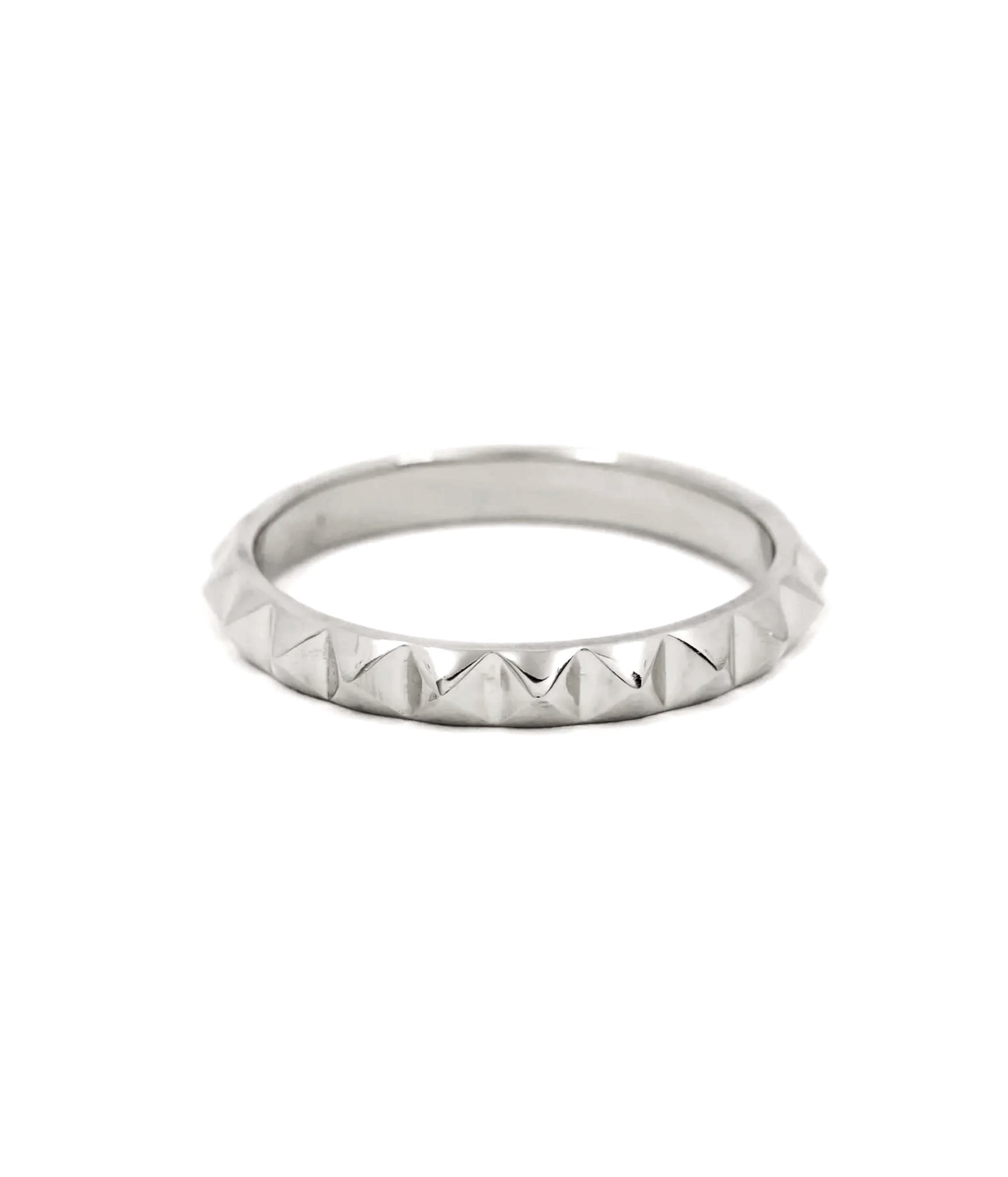slim sterling silver spike ring shot on white back ground